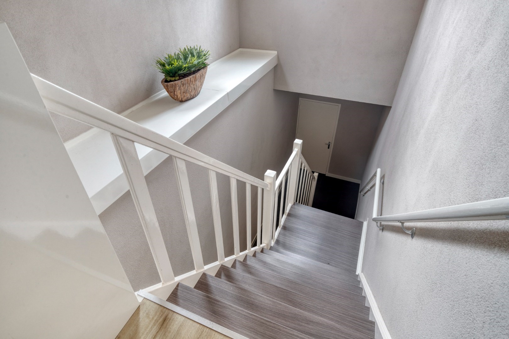 De vaste trapopgang leidt je naar de entree van het appartement op de eerste verdieping.
