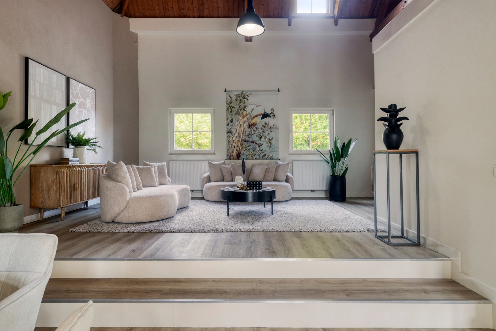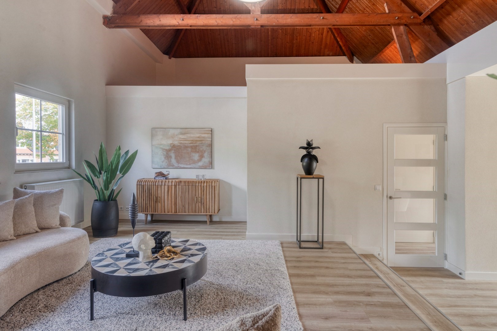 • Verrassend ruime woonkamer met zicht op de fraaie balkenconstructie. Via losse trap is er nog een grote bergruimte.