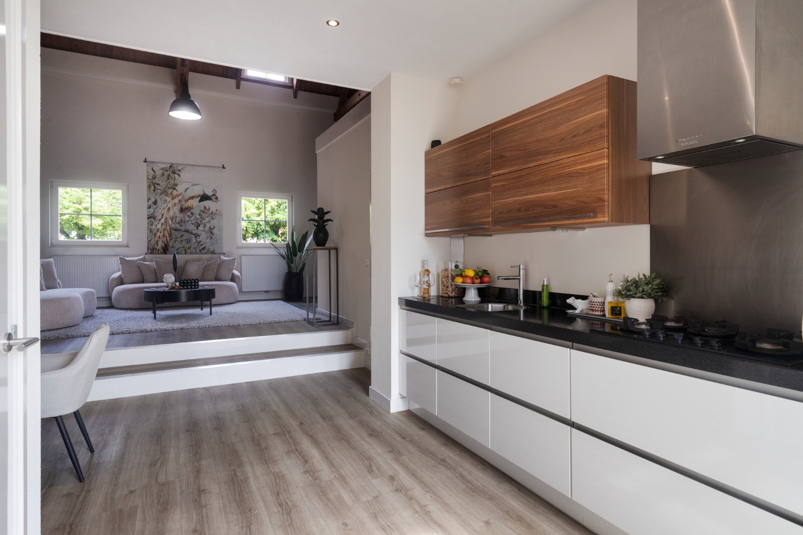 Vanuit de overloop bereik je de technische ruimte met de opstelling van de Nefit CV-combiketel (uit 2014). Vervolgens kom je via een mooie deur met glas binnen in de keuken/eetkamer.