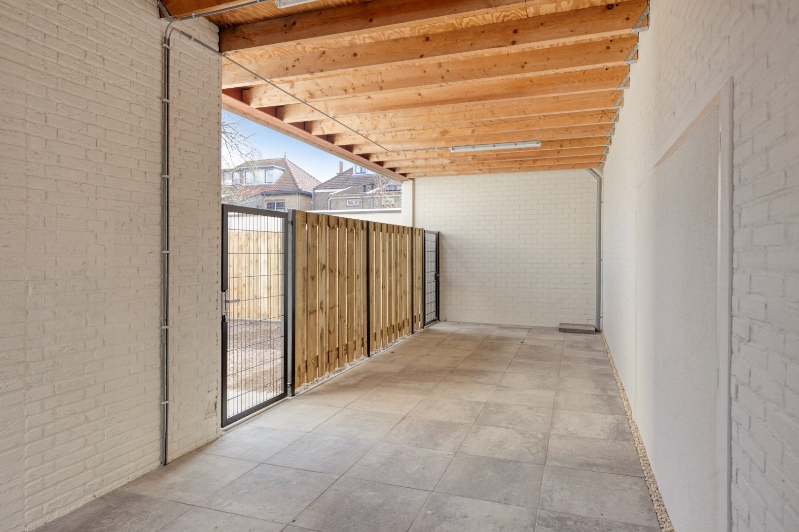Via de tuin is er een eigen achterom naar de gezamenlijke, afgesloten en overdekte stallingsruimte. Deze mooie ruimte is uitermate geschikt voor het stallen van meerdere rijwielen. De grote oprit is gezamenlijk en voorzien van sierbestrating en borders met vaste beplanting. De kleine voortuin heeft eveneens sierbestrating en vaste beplanting.