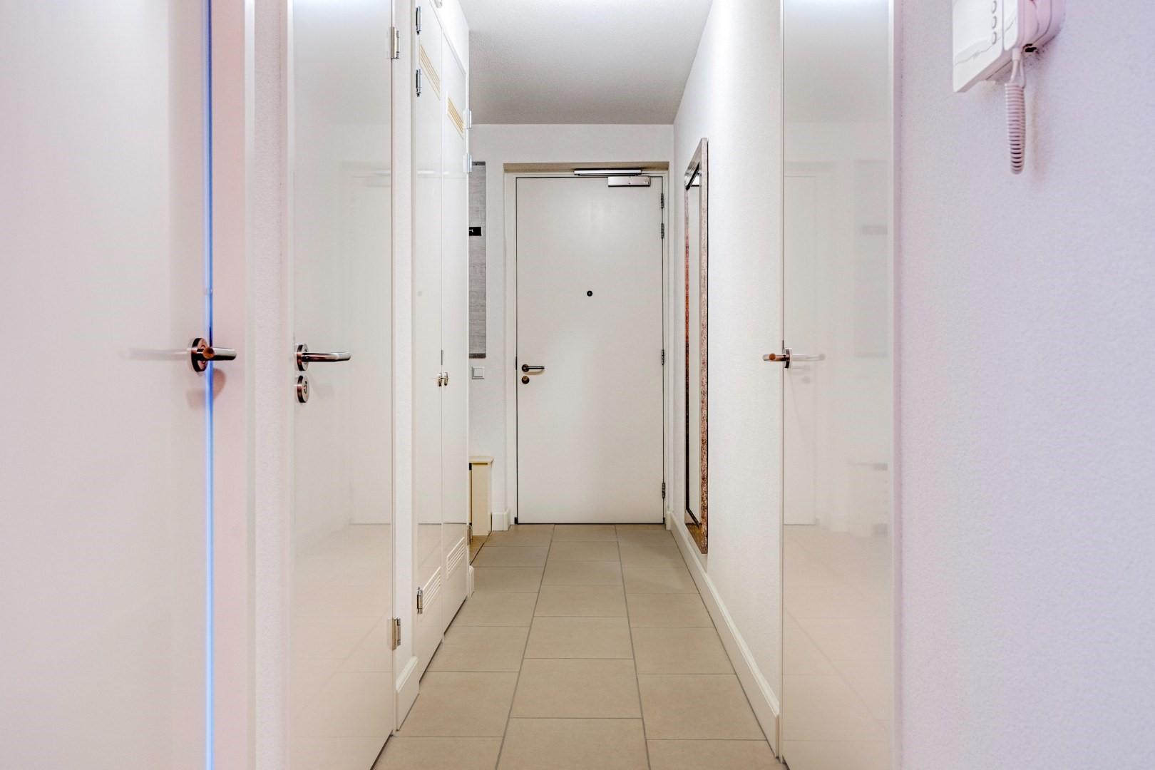 Via de verzorgde entree met beltableau en 2 liften (Ideaal!!) kom je bij de zevende verdieping, waar dit ruime appartement zich bevindt.