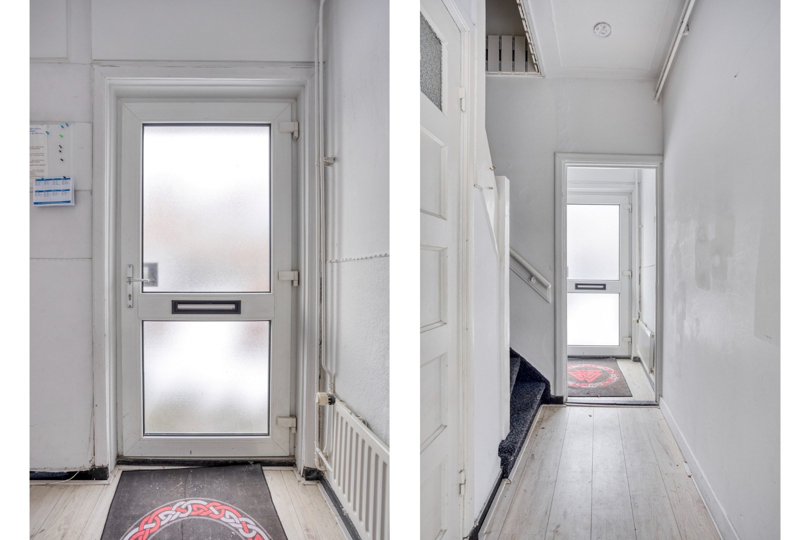 In het portaal bevindt zich de trapopgang naar de bovenwoning.