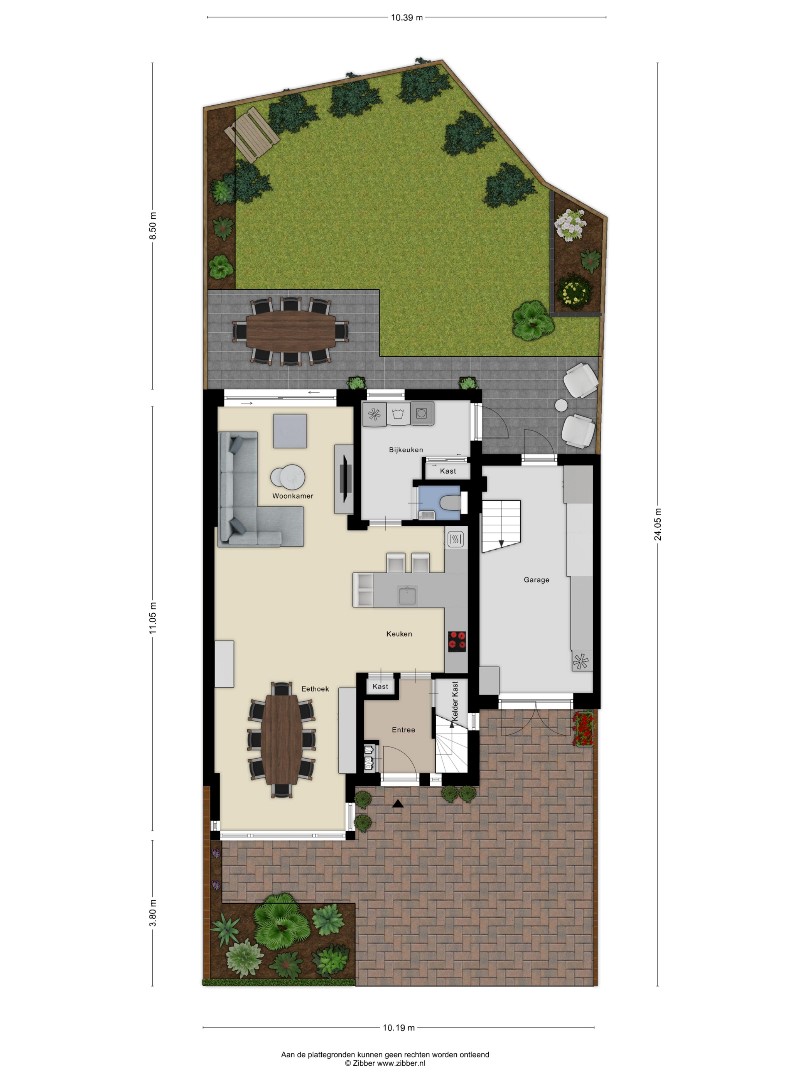 Zowel de voor- als de achtertuin zijn met zorg en oog voor detail aangelegd. De oprit biedt plaats voor parkeren op eigen terrein.