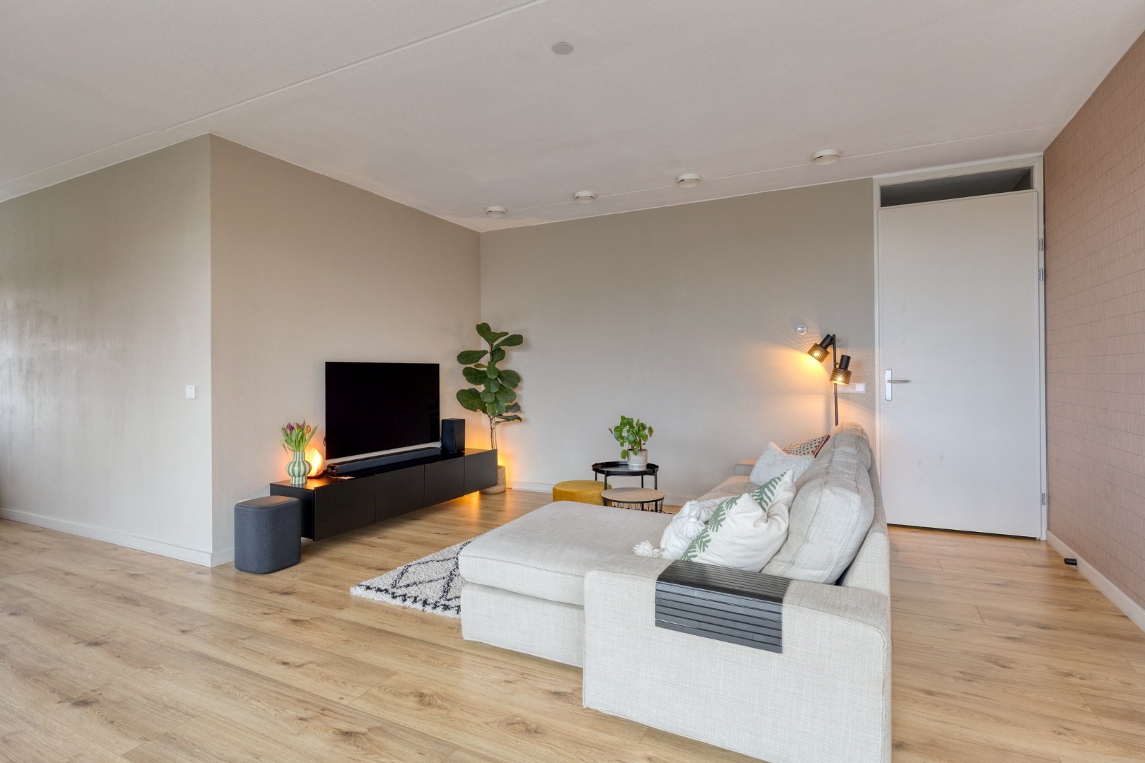 Een airco (split-unit) zorgt hier voor een aangenaam binnenklimaat gedurende het hele jaar. Vanuit de woonkamer heeft u bovendien directe toegang tot het balkon. De wanden zijn deels strak gestuct en deels voorzien van fraai behang, wat zorgt voor een moderne en sfeervolle uitstraling.